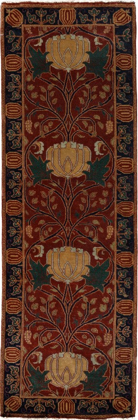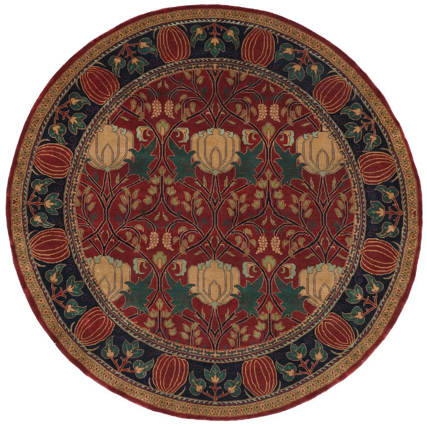 100% wool carpet, hand-knotted using high quality New Zealand wool and Swiss Chrome dyes. Gold, sage, spruce-green, and mahogany.